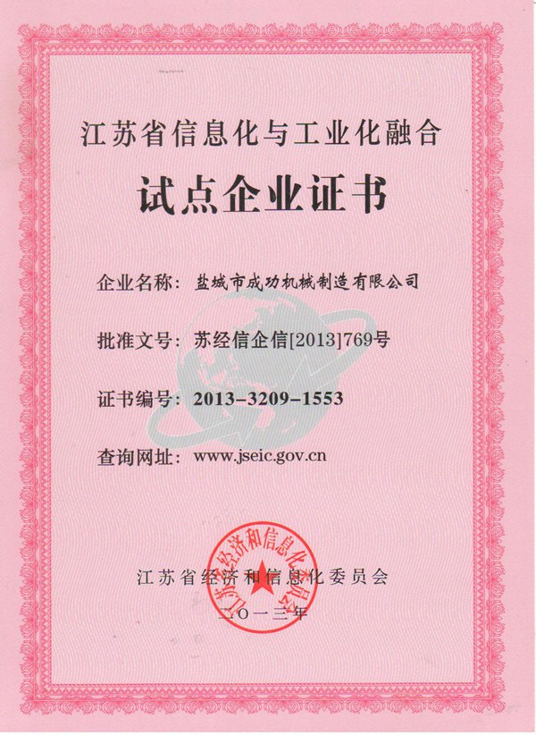• 江蘇省信息化試點企業(yè)證書